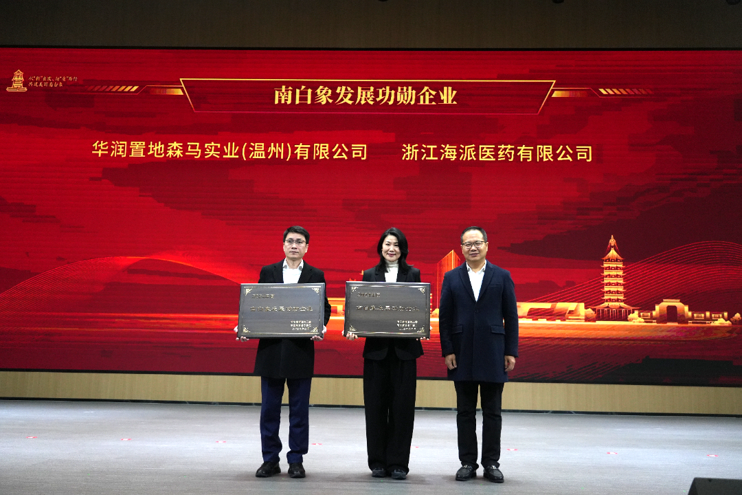 2月27日,溫州市甌海區(qū)南白象街道召開 “從‘新’出發(fā)、向‘質(zhì)’而行,共建美麗南白象” 動(dòng)員大會(huì)暨經(jīng)濟(jì)高質(zhì)量發(fā)展大會(huì)。海派醫(yī)藥董事長(zhǎng)張翔受邀出席。